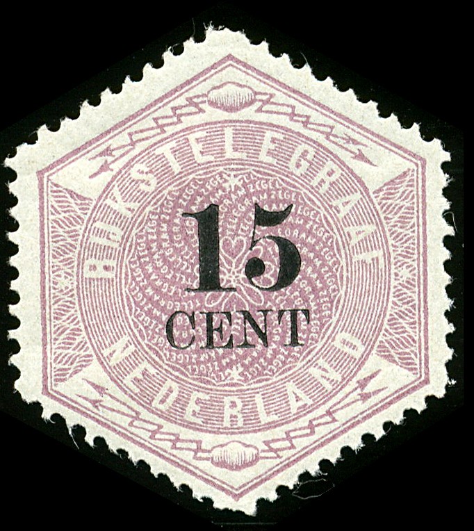 5, 15 cent lila en zwart, ongebruikt prachtex. €.400