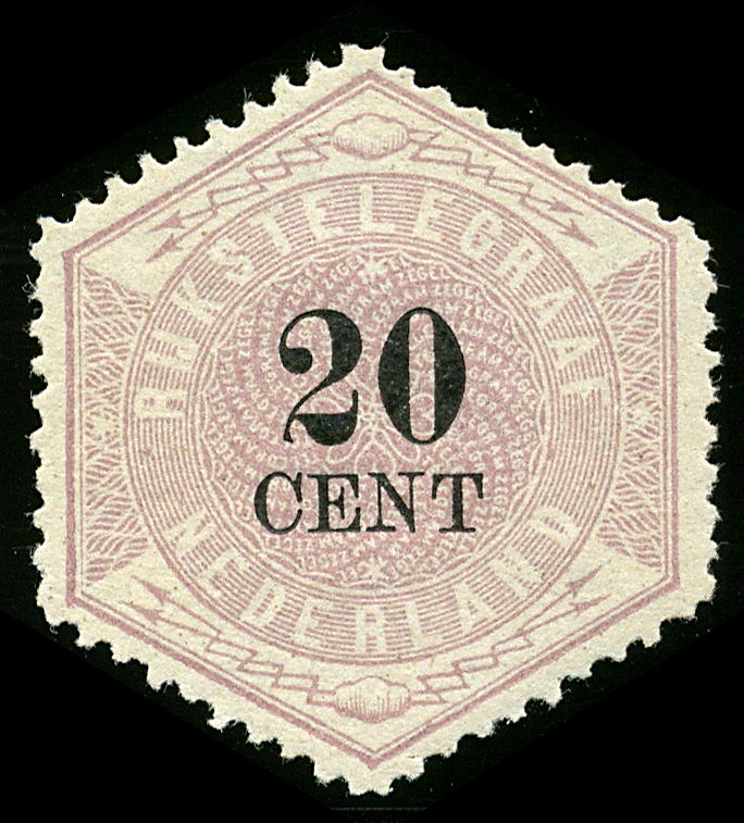 6, 20 cent lila en zwart, postfris prachtex. met rood eigendomsstempeltje op gomzijde €.1600