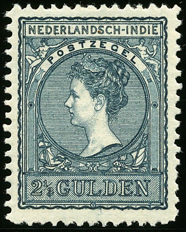 58B en 59B, 1 Gulden doflila en 2½ Gulden zwartblauw, Lt.11 x 11½, postfrisse prachtex. met cert. Bakker (2000) €.600