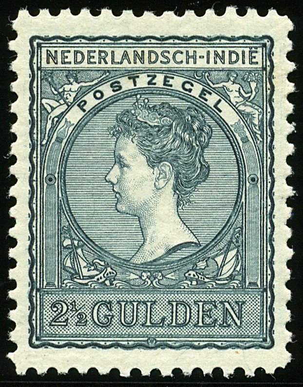 59A, 2½ Gulden zwartblauw, tanding 11, ongebruikt vrijwel pr.ex. met lichte plakkerrest, enkele minieme bruine stipjes, cert. NVPH (2000) €.1100