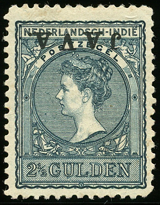 80f, 2½ Gulden met opdruk Java kopstaand, ongebruikt vrijwel prachtex. met min. dun tandje en cert. Vleeming (2016) €.3500