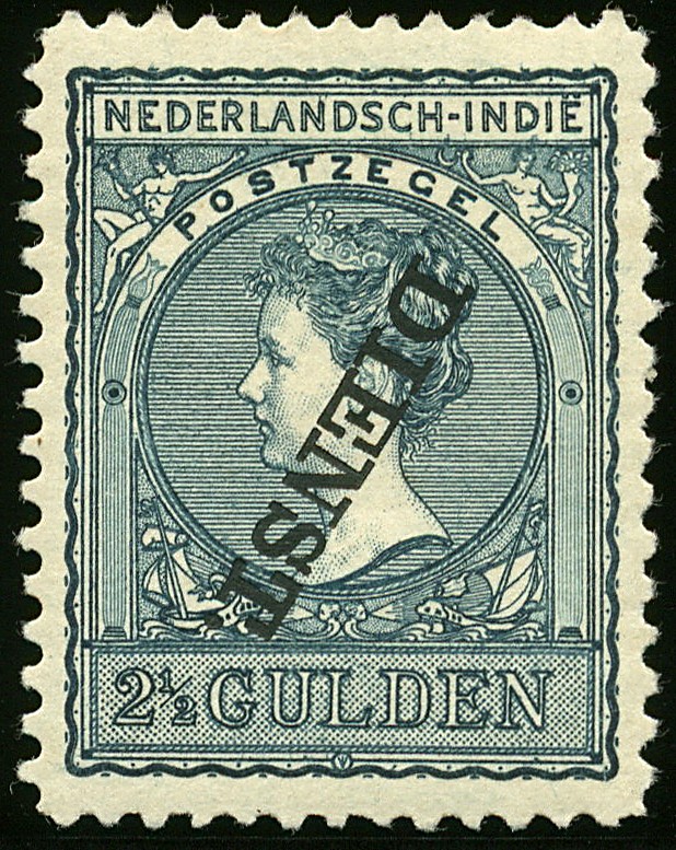 Dienst 27f, 2½ Gulden zwartblauw met kopstaande opdruk, postfris vrijwel prachtex. (minimaal bruin puntje), keur Hekker €.600