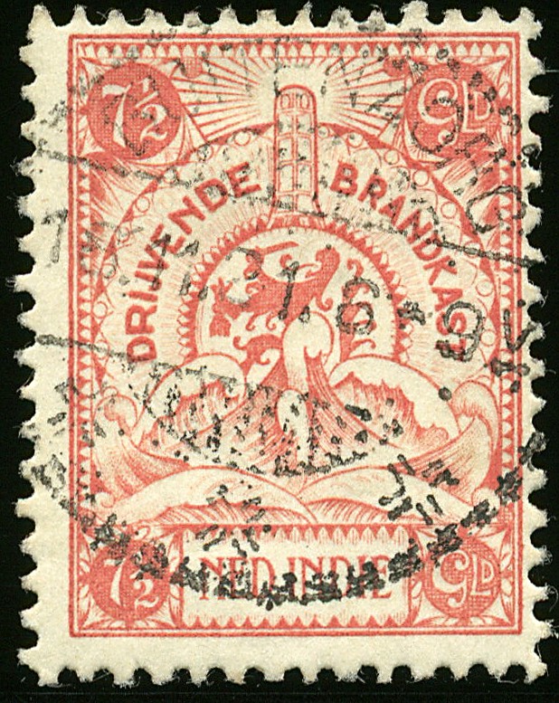 Brandkast 1/7, compleet gebruikte prachtserie, afgestempeld waarschijnlijk op verzoek 'Buitenzorg '18.11.21', correct in de gebruiksperiode, met verklaring Geuzendam en certificaat Storm van Leeuwen (2006) €.2750