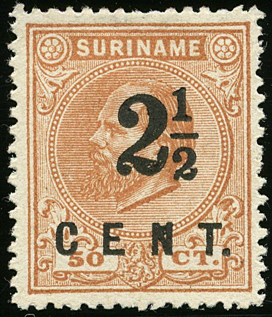21A, 2½ cent op 50 cent oranjebruin, mooi gecentreerd ongebruikt pr.ex. €.400