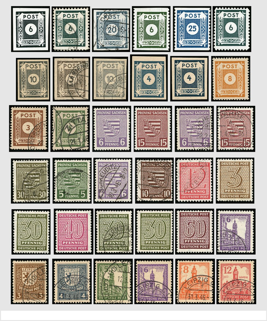 SBZ Ost- und West Sachsen 1945-1946, postfrische und gestempelte Sammlung mit u.a. postfrisch: B1a, 43Ac, 43E, 52btx, 53b, 53c, 126Xwc, 135wbY, 137wbY, Bl.5YZa und 5SX und gestempelt: 52wax, 59b, 75bY, 80aX, 135Xwa und 156-61y. Alle bessere Werte sign. oder mit Befund bzw. Attest Jasch, Ströh, Zierer und Kunz BPP. Ein sehr interessantes Objekt mit einem Kat.-Wert von über € 30.000,=, in Safe Album
