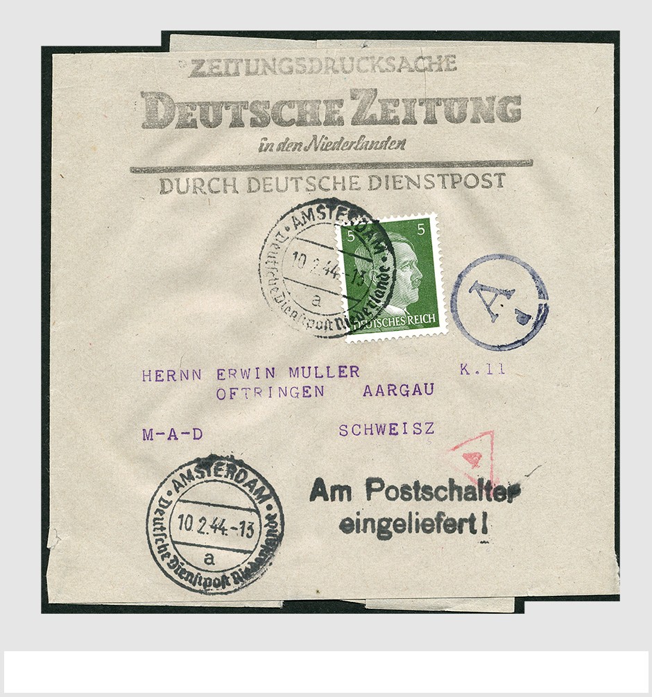 TWEEDE WERELDOORLOG. Deutsche Dienstpost Niederlande. Tien kwalitatief mooie en interessante poststukken met diverse stempels, censuren, frankeringen, portvrij, etc. keurig opgezet en in het Duits gedocumenteerd beschreven