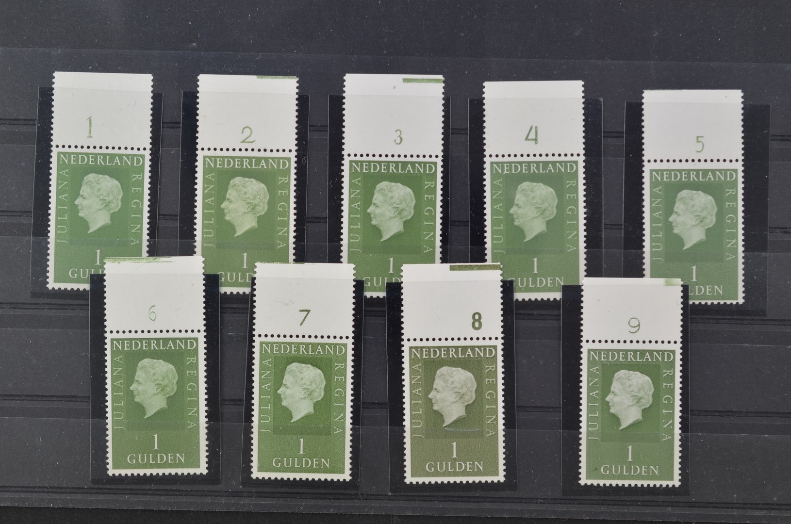 "Regina" 1 gulden met plaatnummers 1 t/m 9, postfrisse prachtex