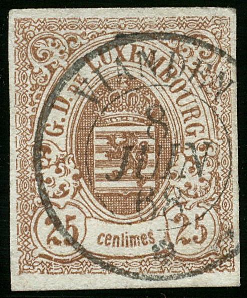 BUREAU DE VIANDEN, Mi.8, 25 centimes 'brun', bas de feuille, oblitération c.à.d. VIANDEN 8/JUIN/68, TB Mi.8, 25 cts 'brun', Prachtstück mit Bogenunterrand, entwertet mit DKr. VIANDEN 8/JUIN/68. Cert. Demuth (1984)