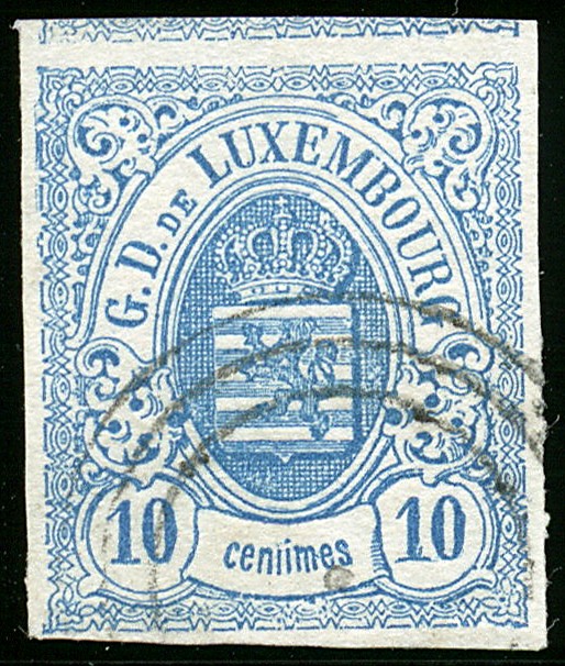 BUREAU DE WILTZ, Mi.6, 10 centimes 'bleu', voisin, oblitération 3 cercles, TB Mi.6, 10 cts 'blau', mit Teil der Nebenmarke, entwertet mit Dreikreisstempel von Wiltz. Tadellose Erhaltung. Sign. Demuth BPP