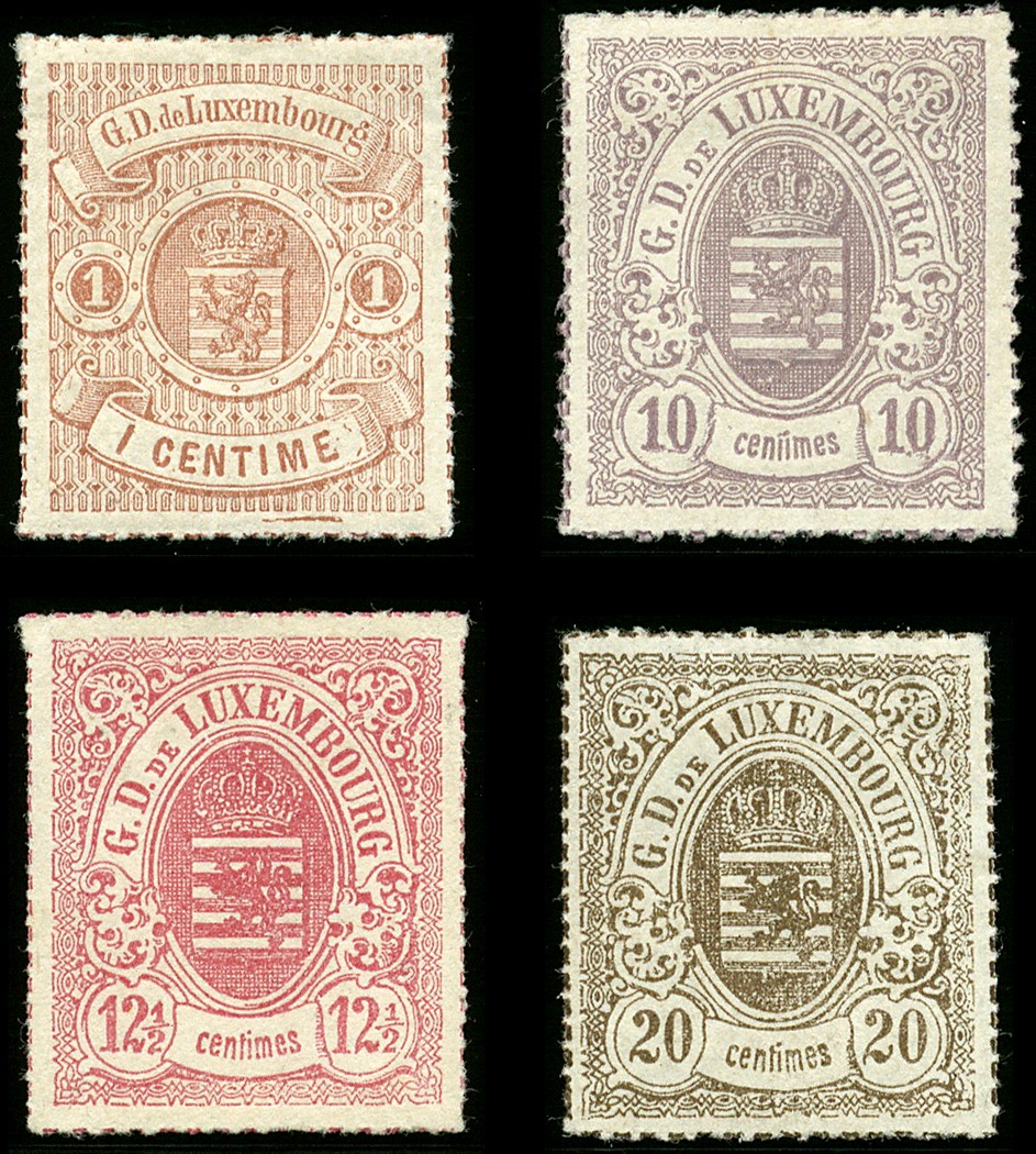 Mi.16, 1 cts 'brun-rouge' *, Mi.17, 10 cts 'lilas-bleu' (*), Mi.18, 12½ cts 'carmin' (*) et Mi.19, 20 cts 'brun-gris' (*) sign. FSPL, TB Mi.16, 1 cts 'rotbraun' *, Mi.17, 10 cts 'blaulila' (*), Mi.18, 12½ cts 'karmin' (*) und Mi.19, 20 cts 'graubraun' (*) sign. FSPL, alle Pracht.
