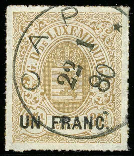 BUREAU DE CAPELLEN, Mi.25, Un Franc sur 37½ centimes 'gris-brun', oblitération avec cachet à date CAP/22 1/80 Mi.25, Un Franc auf 37½ cts 'graubraun', entwertet mit Kreisstempel "CAP/22 1/80", Prachtstück. Sign. Demuth BPP