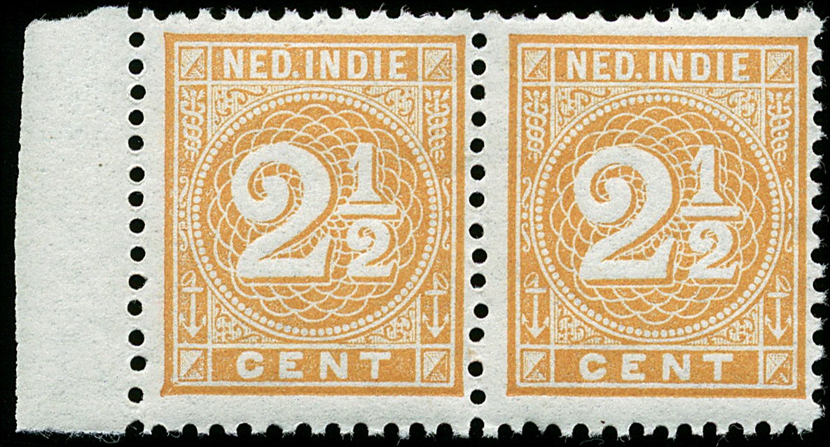19B+19A, 2½ Cent Cijfer in gecombineerde tanding, postfris prachtpaar met velrand. Ruim € 300