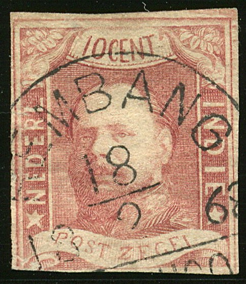Halfrond-franco REMBANG op nr. 1. Zeer fraai ex. met mooie afst.