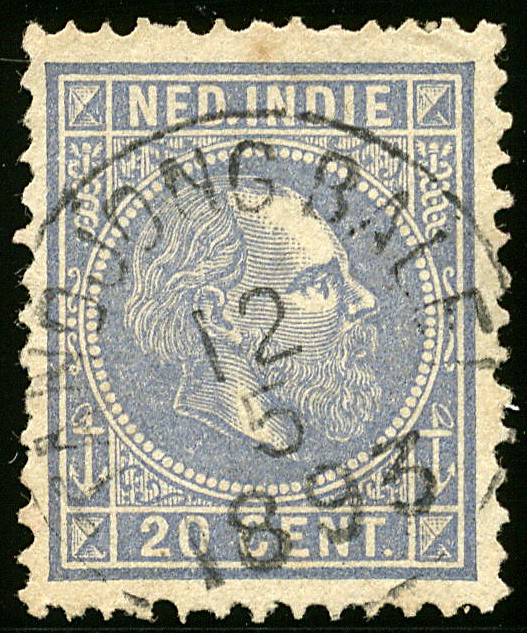 Kleinrond TANDJONG BALEI op 20c nr. 12. Prachtex. (ondanks miniem bruin puntje) met lichte, volledige afst. Op deze zegel zeer zeldzaam! (SvL 80++)