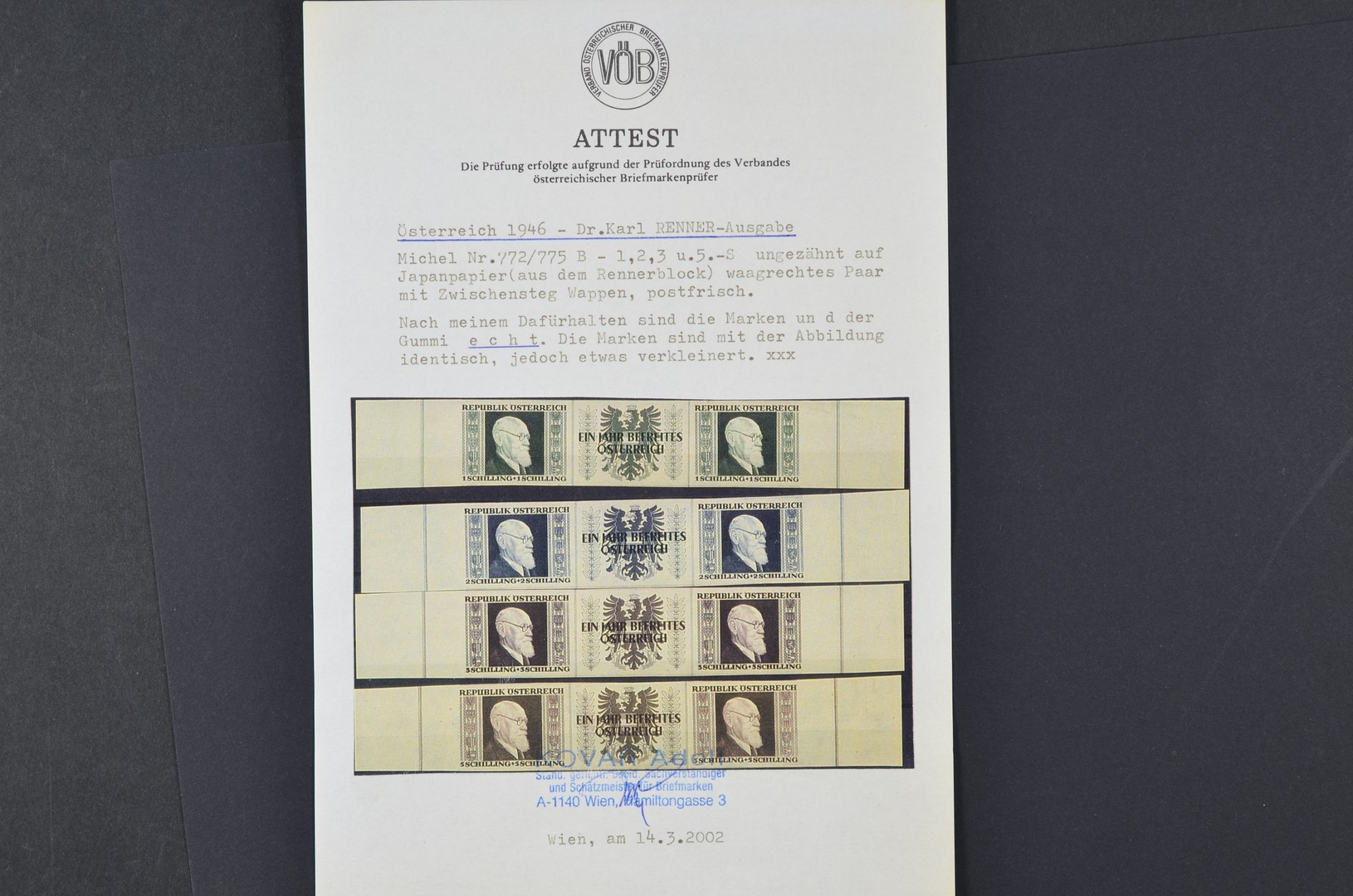 OOSTENRIJK Mi. 772/75B, Renner-serie ongetand in postfrisse horizontale paren met tussenstroken (uit de Rennerblokken), certificaat Kovar(2002)