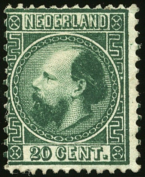 20 Cent donkergroen type II in kamtanding 12¾:11¾ nr. 10IIA. Ongebruikt prachtex. met volle, originele gom. € 1250