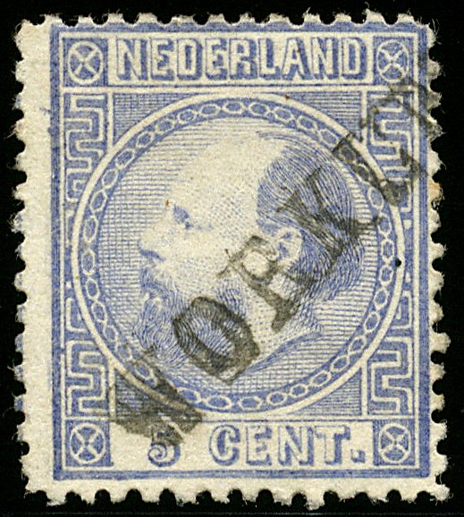 WORKUM in schreefletters in zwart op 5 cent. Prachtex. met ideale afst.
