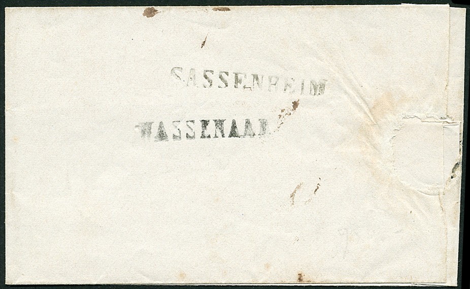 Briefomslag zonder frankeerzegel van WASSENAAR (az. naamstempel in schreefletters in zwart) via Leiden 18-2-1862) naar Sassenheim (az. naamstempel in schreefletters in zwart), alsmede complete zeer frisse vouwbrief van Woerden 18-7-1822 naar Den Haag. Veiling 496, k.1817