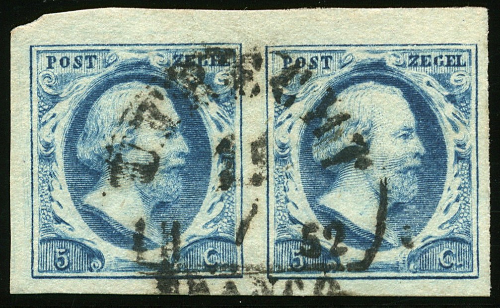 1b-Pl.I-27/28. Zeer breed gerand pracht randpaar (mist hoekje, ver van zegelbeeld), centraal gestempeld Utrecht B