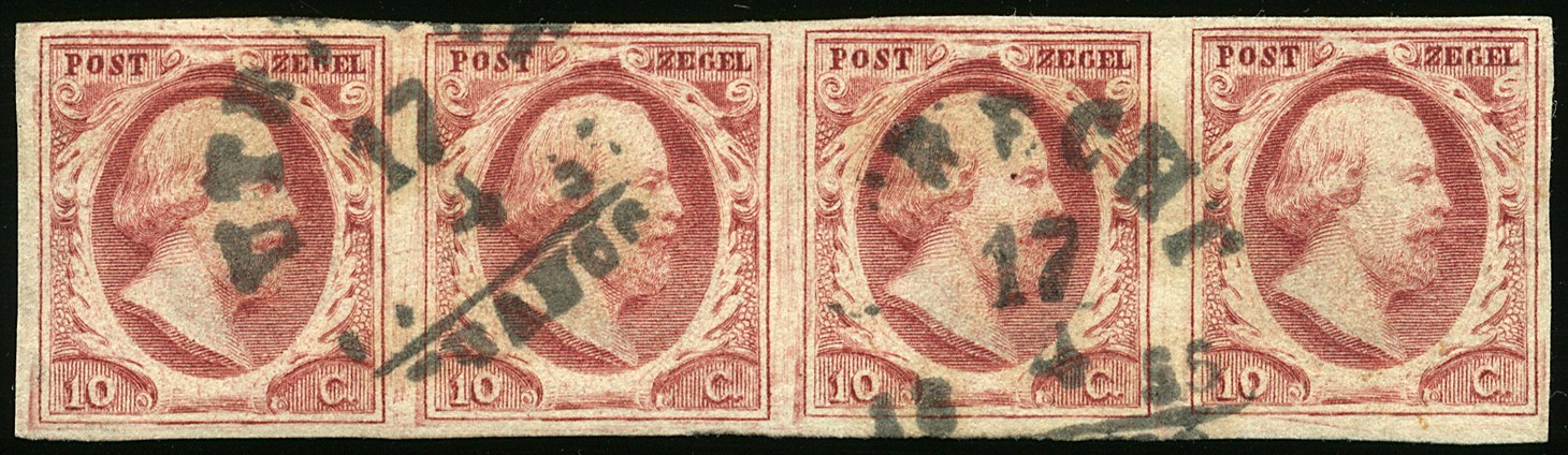 2e-Pl.III-72/75. Redelijk tot goed gerande prachtstrip van vier, netjes gestempeld te Utrecht. € 900