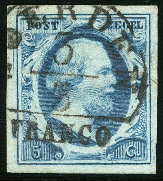 WOERDEN A (EY.250) op 5 cent nr. 1d-Pl.III-15, prachtex. met nagenoeg complete afstempeling