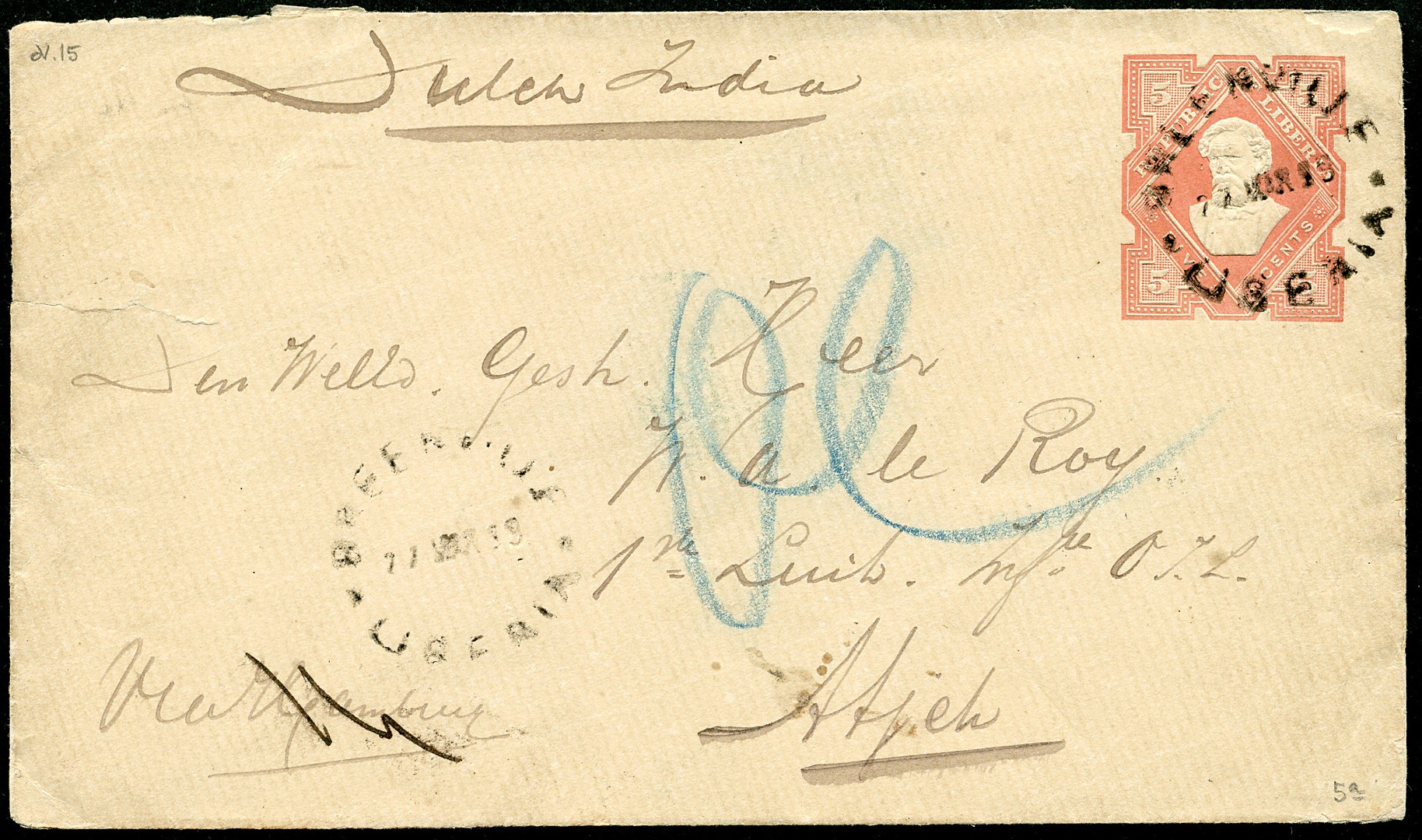 KAMEROEN. Bk. van 10pf van Kamerun 3-9-1898 over Weltevreden 24-10 en Soerabaja 26-10 naar Menado