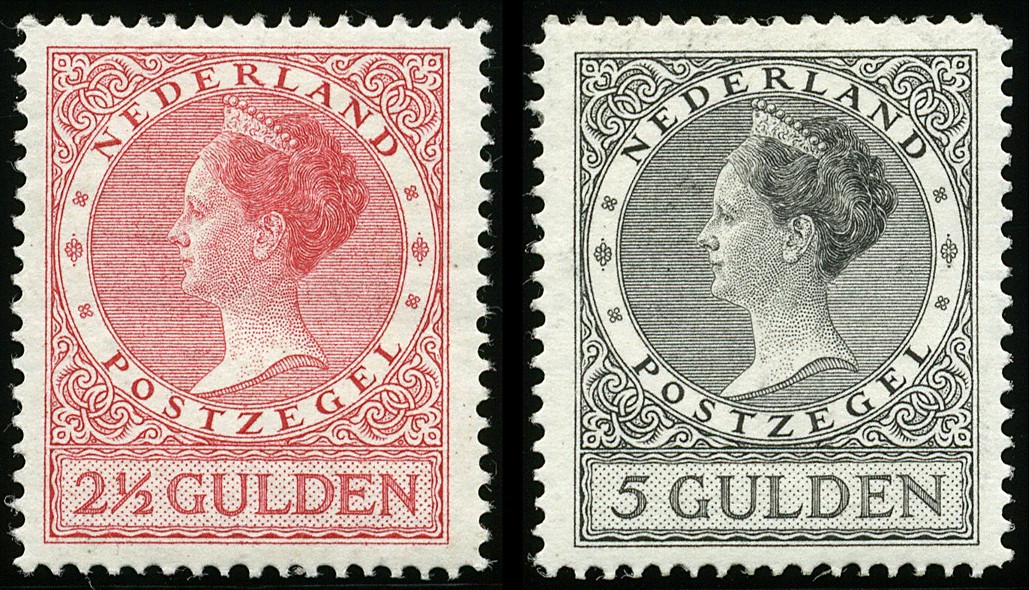 163B/165B, 1, 2½ en 5 Gulden Veth, Lt.12½, postfrisse prachtex. € 650