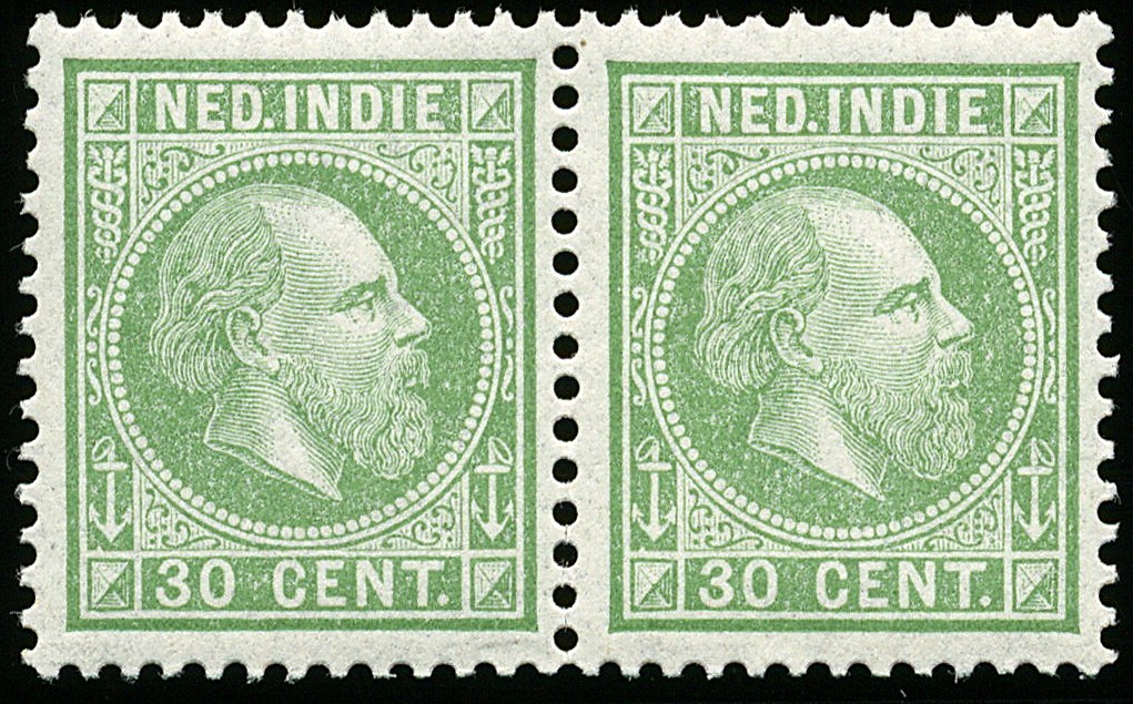 14, 30 cent groen, horizontaal prachtpaar **/* € 700