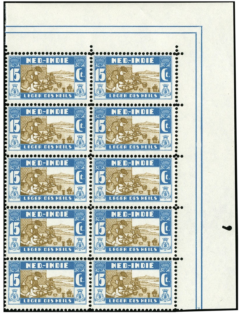176/79, Leger des Heils 1932, 180, Willem van Oranje en 182/85, Crisiswerk 1933, alle 10x in postfrisse prachtex. merendeels in hoekblokken. € 690