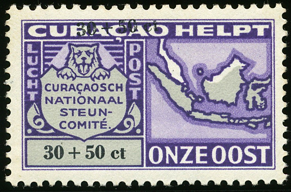 LP65f, 30 + 50 ct. met dubbele waarde-indruk waarvan 1 sterk verschoven, postfris vrijwel pr.ex. (twee vingerafdrukken) € 450