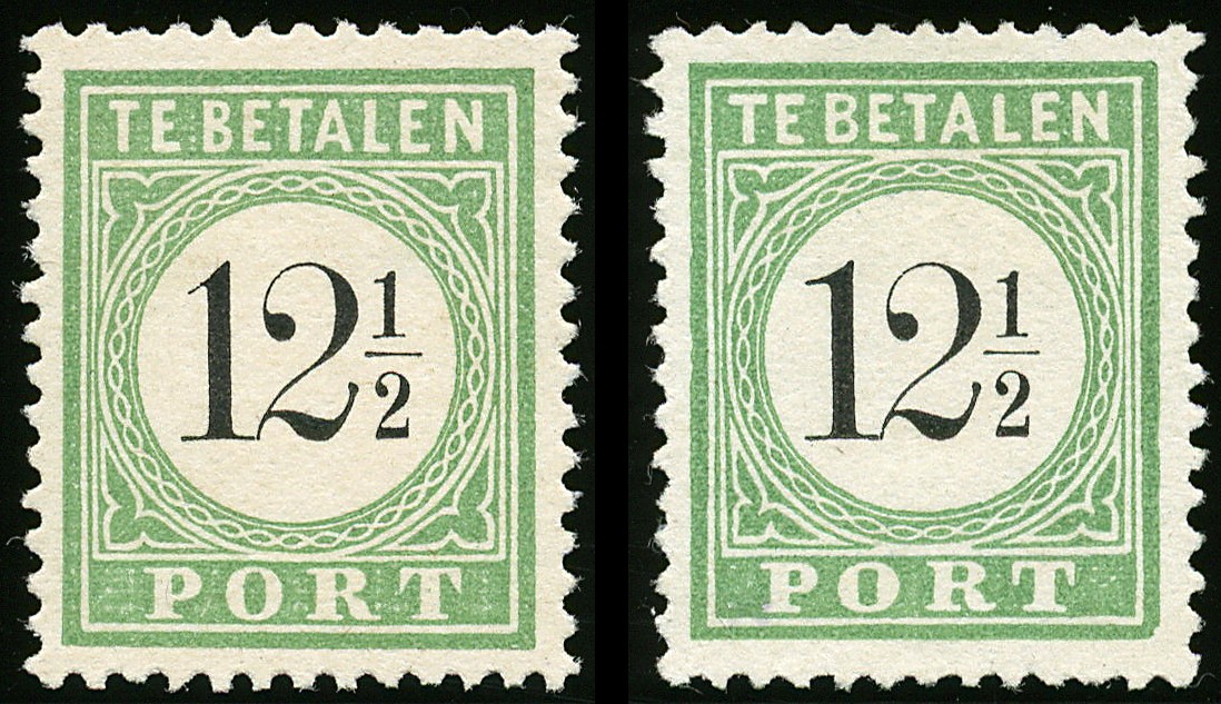Port 4, 12½ cent type I en III, ongebruikte vrijwel pr.ex. € 1050