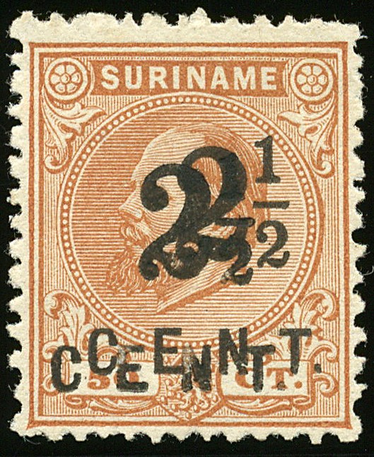 21Cf, 2½ cent op 50 cent met dubbele opdruk, ongebruikt prachtex. € 500