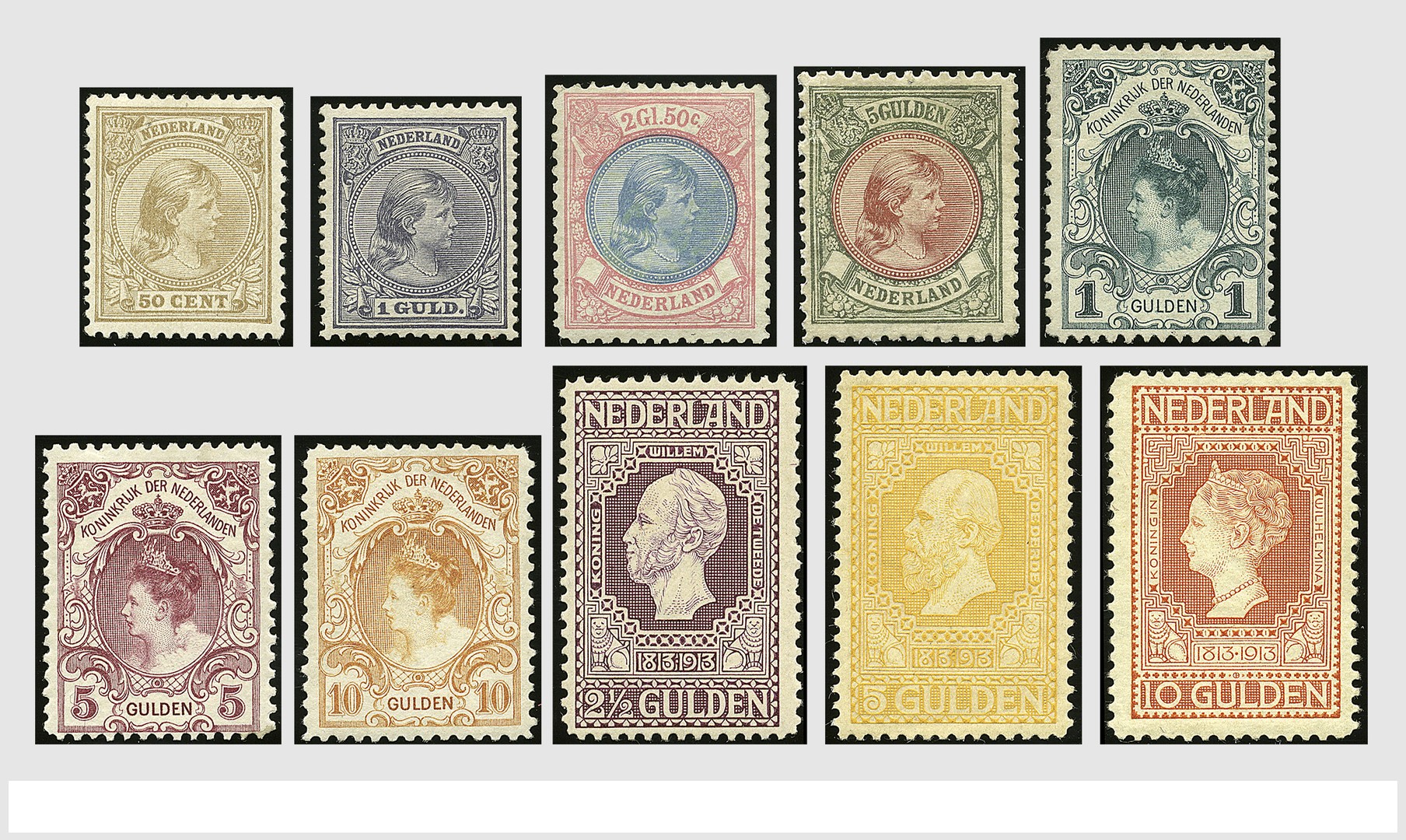 1876-1913, ongebruikte verz. op Schaubek albumbladen, wb. 34/44, 45/48, 49, 77/80, 84/86 en 90/101, div. nrs. postfris! Mooie koop met hoge waarde!
