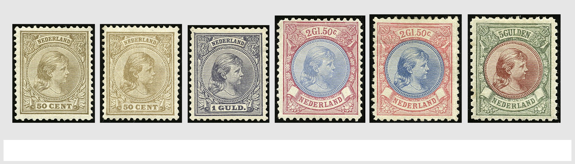Emissie Hangend Haar, nrs.34 t/m 48 ongebruikt, wb. zonder gom of nagegomd, gespecialiseerd op Davo bladen waarbij eerste, tweede en derde groep compleet, 34 t/m 43 met opdruk Specimen, 47A, 45B, 46B, 47B, 46C en 48, een enkel zegeltje met kleine bemerkingen, overigens prachtkoop met zeer hoge cat.wrd.