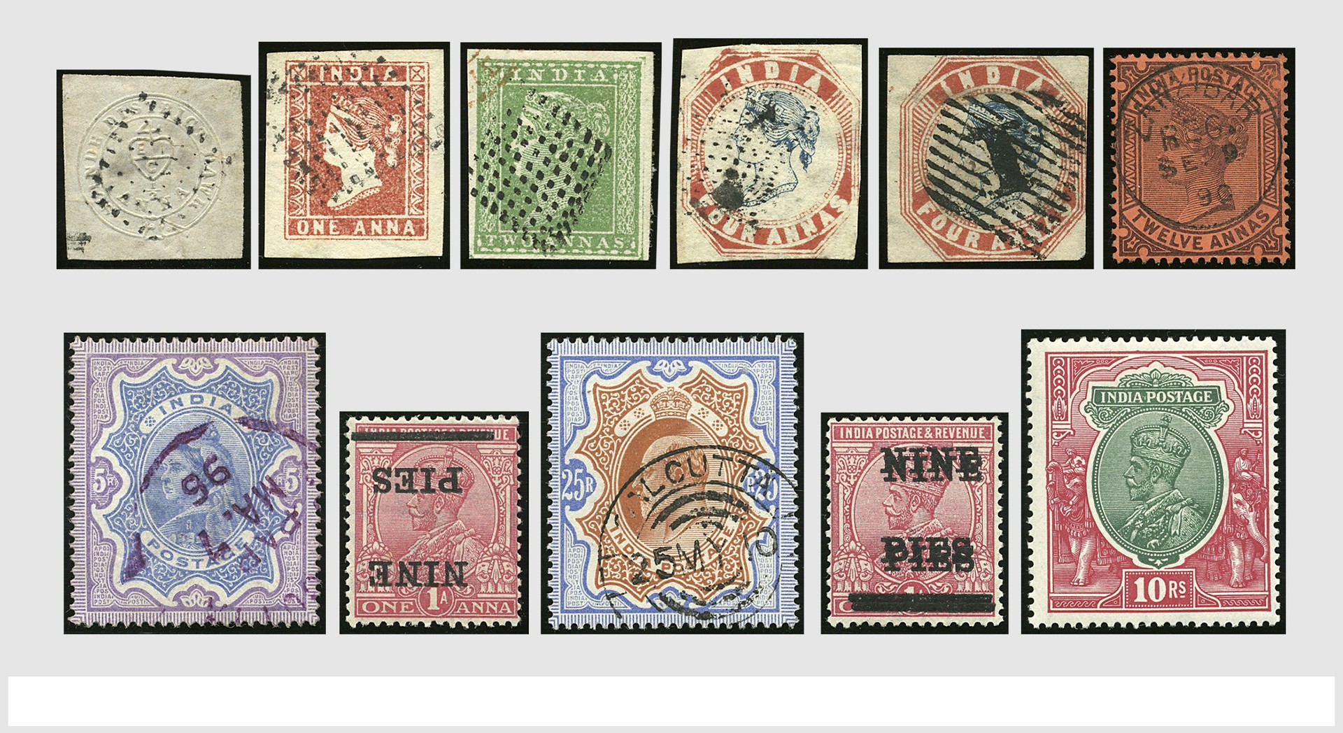 ENGELSE KOLONIËN, India 1852-1938, verzameling o/* op albumbladen met verschillende betere nrs. o.a. S.G. S1, 6, 12, 19, 22, 51, 66, 119/147, 192 a/c, 216/17, etc. Mooi kavel!