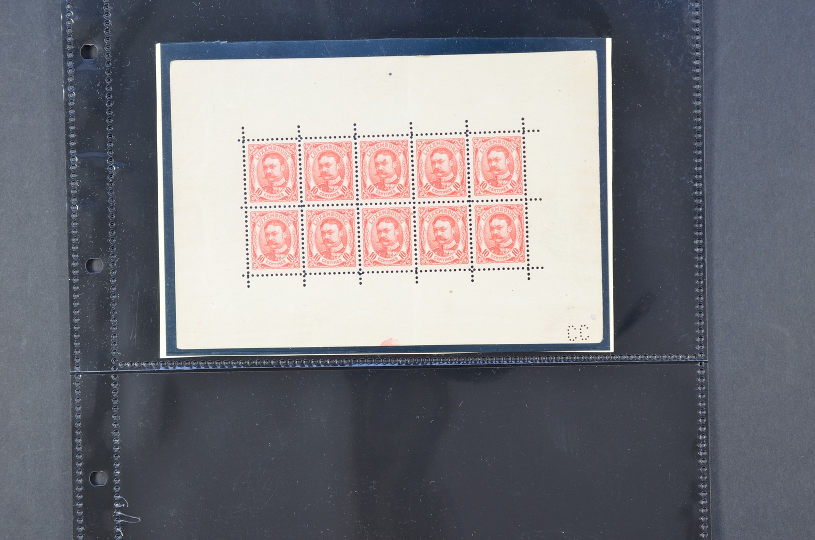 LUXEMBURG 1906, Mi. 72, 10 centimes in velletje van 10 stuks, postfris met lichte verticale vouw