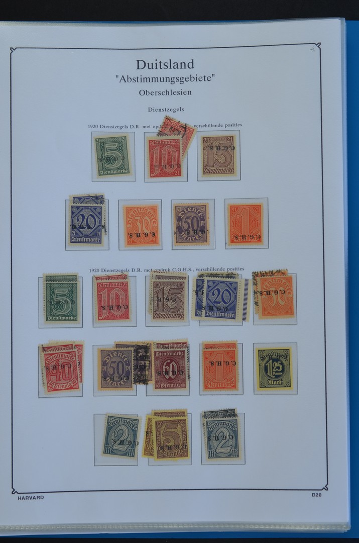 OBERSCHLESIËN 1920, verzameling Dienstzegels o/*/**, met opdrukvariëteiten zoals dubbeldrukken en kopstaand, in map op albumbladen. Leuke koop