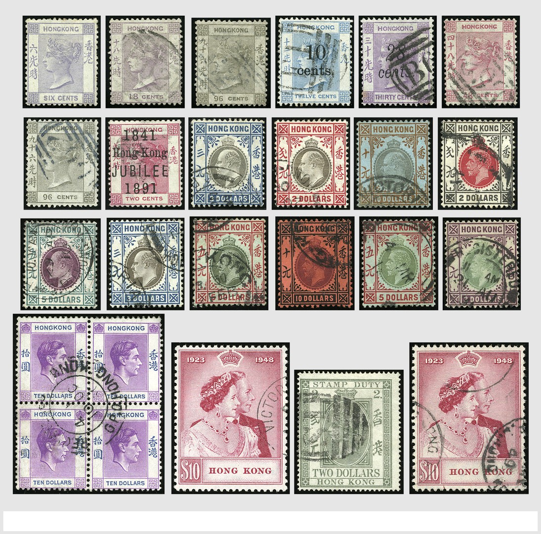ENGELSE KOLONIËN Hongkong 1862-1995, meest gebruikte voorraad (enkele zegels *) in 4 insteekboeken waarin de oudere emissies goed aanwezig, bevat o.a. S.G. 19(4), 21, 25, 51, 73/74, 76(!), 88/89, 113, 115/116, 131/132, 172(3). Prachtkoop met enorme cataloguswaarde!