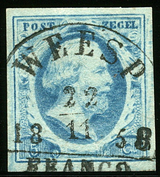 WEESP B (EY.75) op 5 cernt nr. 1k-Pl.III-27. Prachtex. met ideale afst.