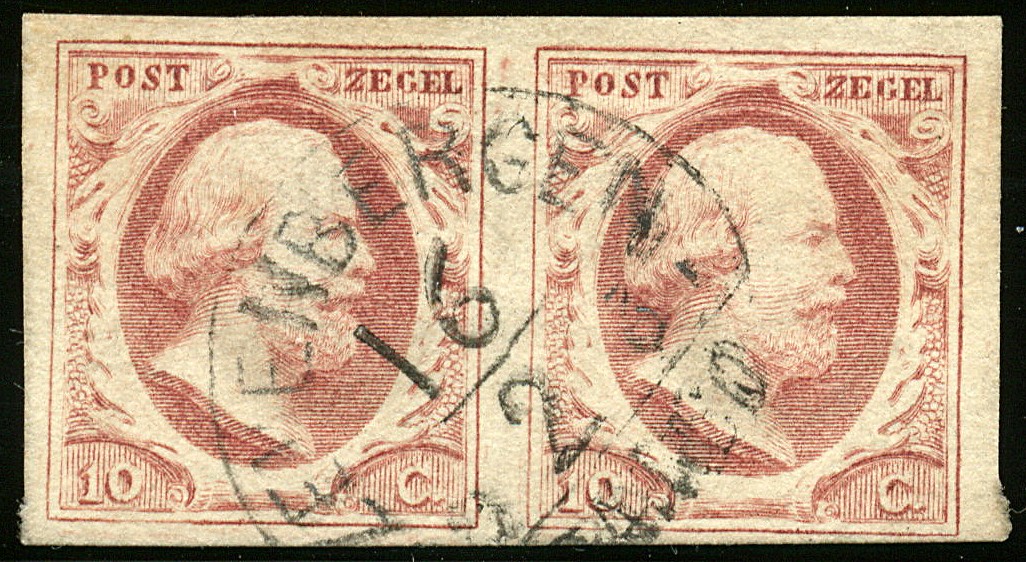 ZEVENBERGEN C (EY.200) op 10 cent nr. 2l-Pl.VI-13/14. Prachtpaar met centrale afst.