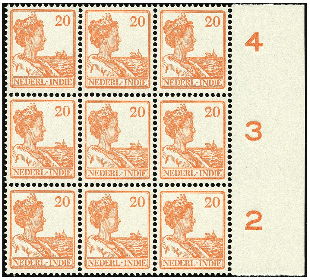 122, 20 Cent oranje in postfris pracht randblok van negen. € 675
