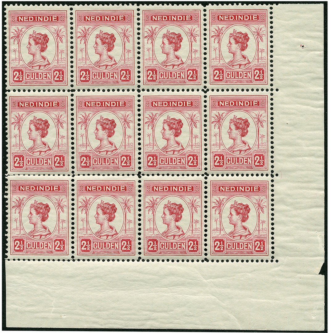134A, 2½ Gulden in lijntanding 11 x 11½ in postfris pracht hoekblok van twaalf. € 960