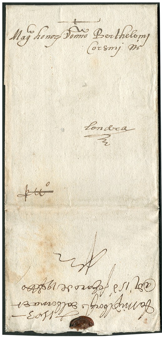 Corsini. Cpl. vouwbrief in mooie kwaliteit van Middelburg 12-2-1584 naar Bartholomeus Corsini te Londen