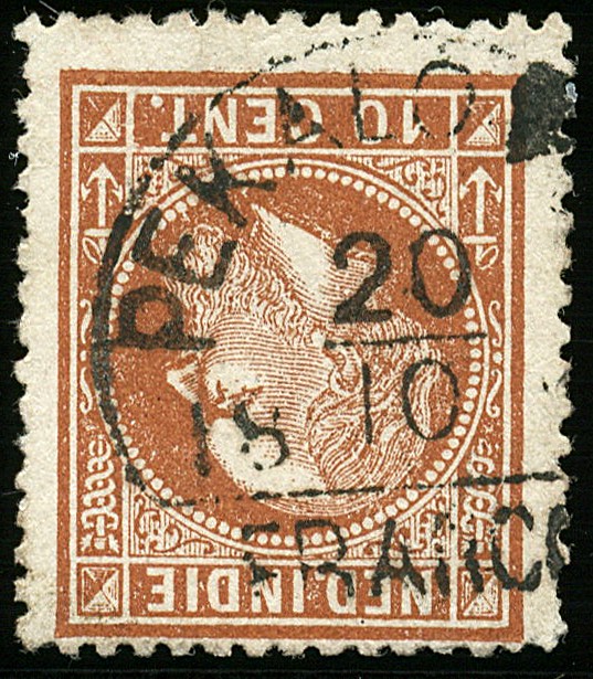 Halfrond-franco PEKALONGAN op 10c nr. 9. Prachtex. met mooie doch kopstaande afdruk van dit op deze emissie schaarse stempel (V.500)