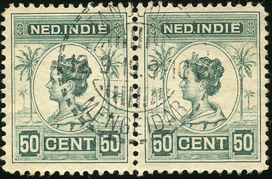 Langebalk TANDJONG-/MENGEIDAR op 50c. Prachtpaar met mooie, scherpe, centrale en volledige afst. Zeldzaam en in veel collecties een manco!