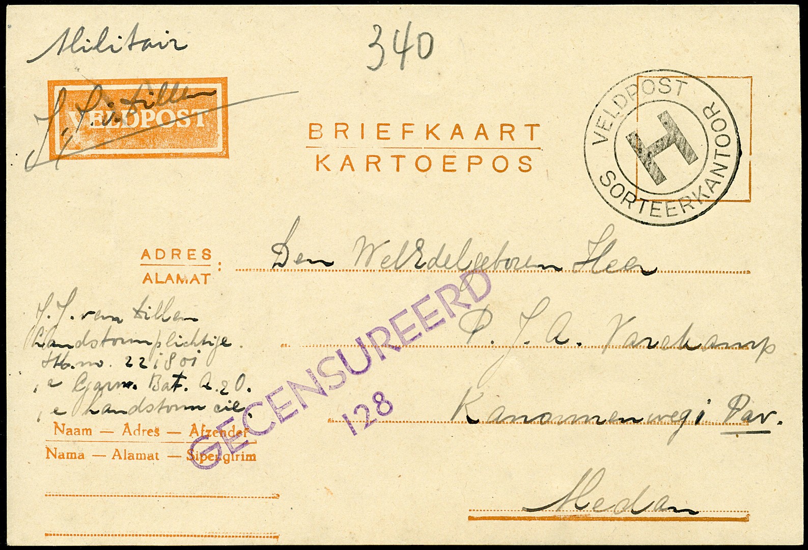 Zes veldpostbriefkaarten 1942, afgest. met type ´Veldpost/Sorteerkantoor´ in cirkels (letters A, B, C, 2x D en H)