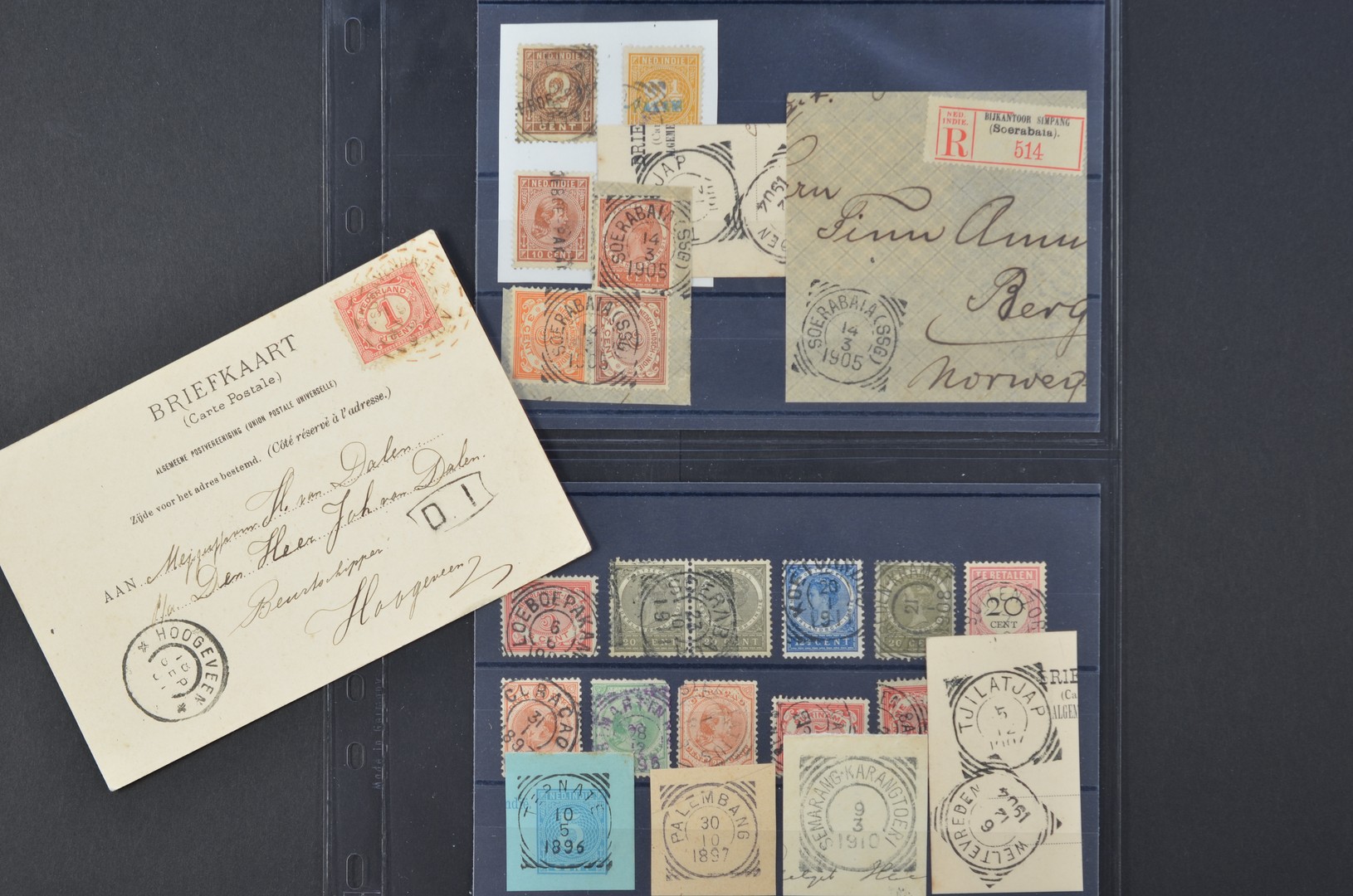 POSTHISTORIE, Brandstempel ´sGravenhage 18-9-1901 op prentbk. en div. stempels O.G. op 2 insteekkaartjes