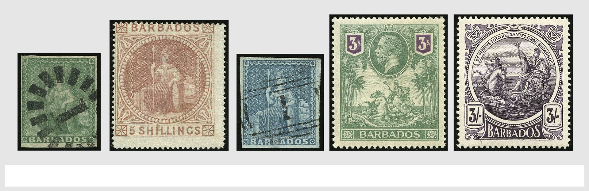 ENGELSE KOLONIËN, Barbados 1852-1965, o/*/** verzameling op insteekbladen met uitgebreid 1e emissie en verder met o.a. S.G. 64, 178/80, 190/91, 201/12, 217/28, etc.