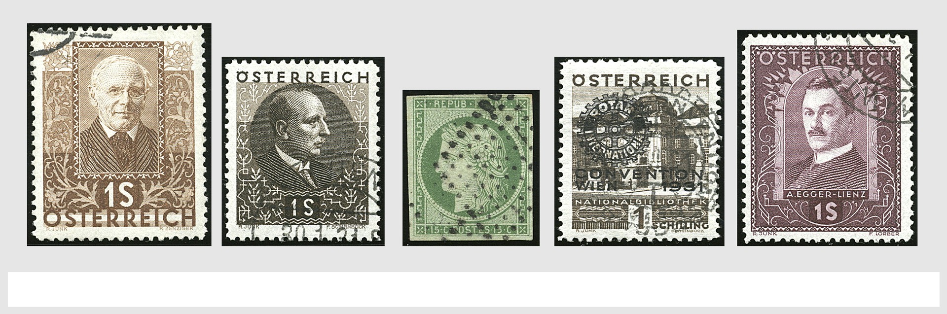FRANKRIJK Yv.nr.2 en 33 gebruikt, Oostenrijk 512/17, 518/23, 524/29, 545/50, Bizone blok 1, enz., op insteekblad