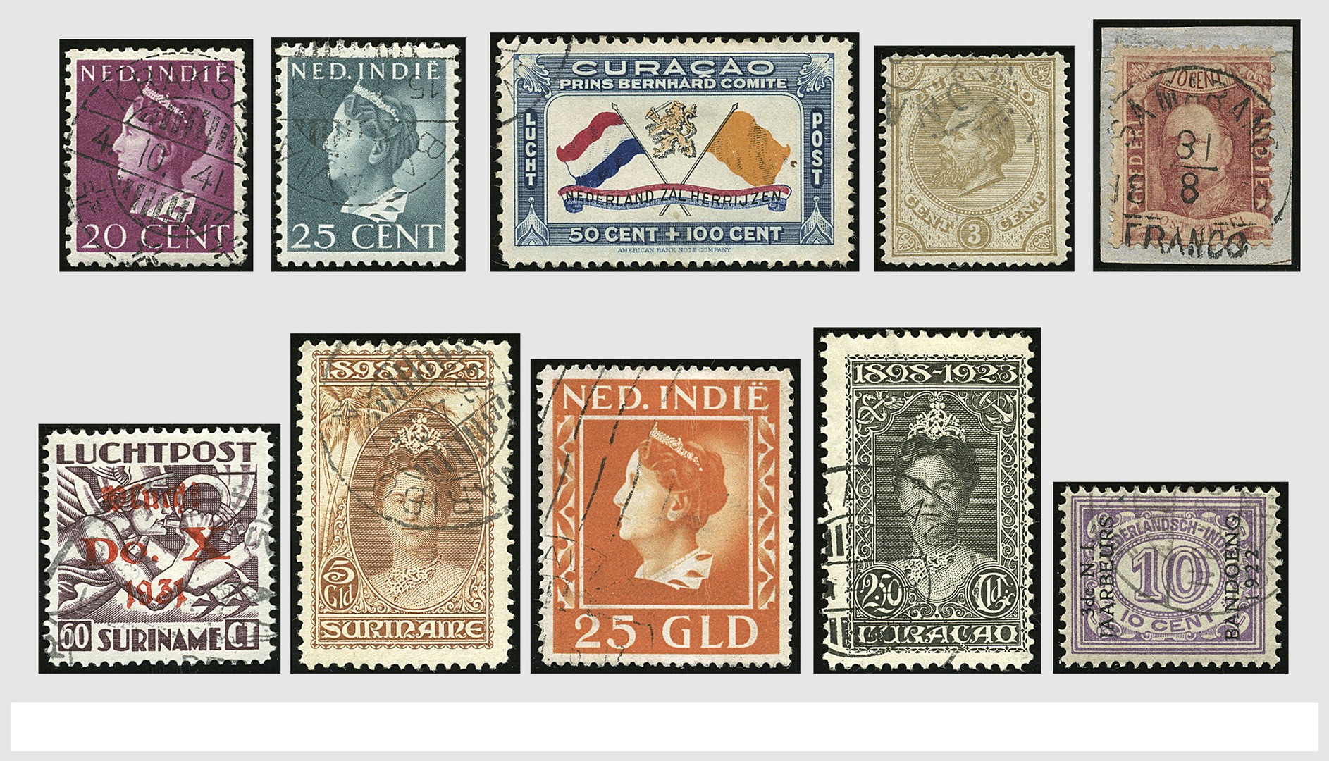 O.G.D., Ned.-Indie, NNG, Curacao, Antillen, Aruba, Suriname 1864-2003, geheel gebruikte verzameling in prachtkwaliteit wb. vele goede nrs. en series in 4 Davo albums. Cat.wrd. vlgs. inz. (NVPH 2013) € 8800